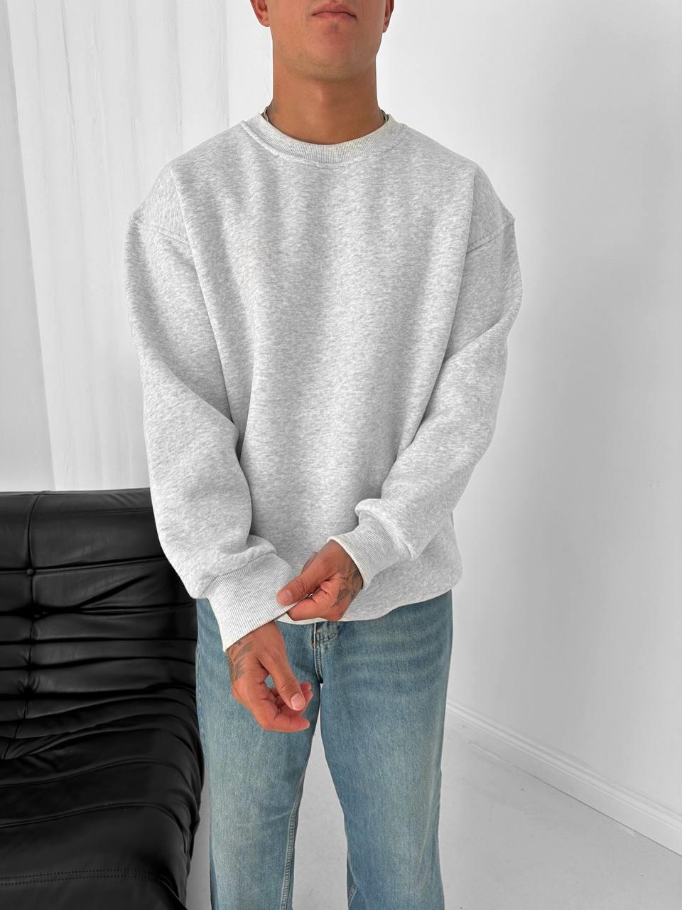 Basic Bisiklet Yaka Sweatshirt Üç İplik Gri Melanj