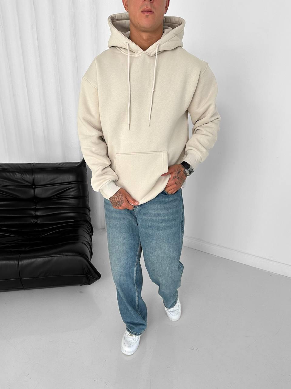 Basic Kapüşonlu Sweatshirt Üç İplik Bej